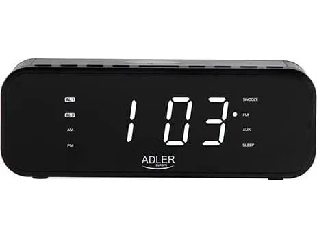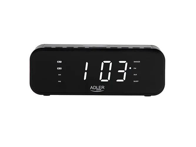 Choose our alarm clock, and you will quickly learn that waking up in the morning can be pleasant!Adler AD 1192B. Type: Digital alarm clock, Product colour: Black, Time format: 12h. Power source: AC/Battery, Battery voltage: 1.5 V, AC input voltage: 230 V. Width: 205 mm, Height: 77 mm, Depth: 108 mm. Quantity per pack: 1 pc(s). Housing material: Plastic