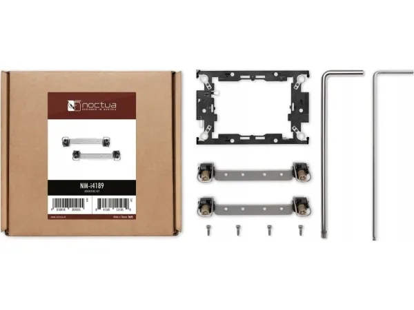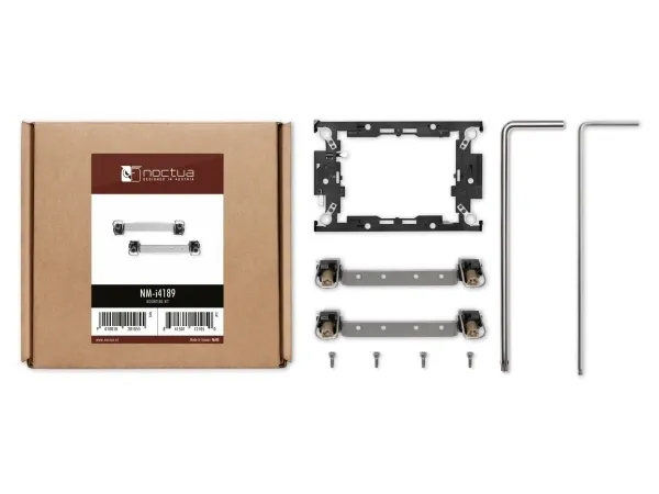 The NM-i4189 mounting-kit enables the installation of Noctua's DX-3647 and TR4-SP3 series coolers to Intel's LGA4189 platform (Whitley), for Ice Lake-SP based 3rd generation Xeon Scalable (Platinum, Gold, Silver or Bronze) processors and W-3300 series workstation CPUs (Ice Lake-64L). Integrating standard Intel parts such as the anti-tilt mechanism, Torx T30 PEEK nuts and LGA4189-4 (P4) CPU carrier frame, the NM-i4189 is fully compliant with Intel's installation guidelines and provides a familiar mounting procedure for experienced LGA4189 users.