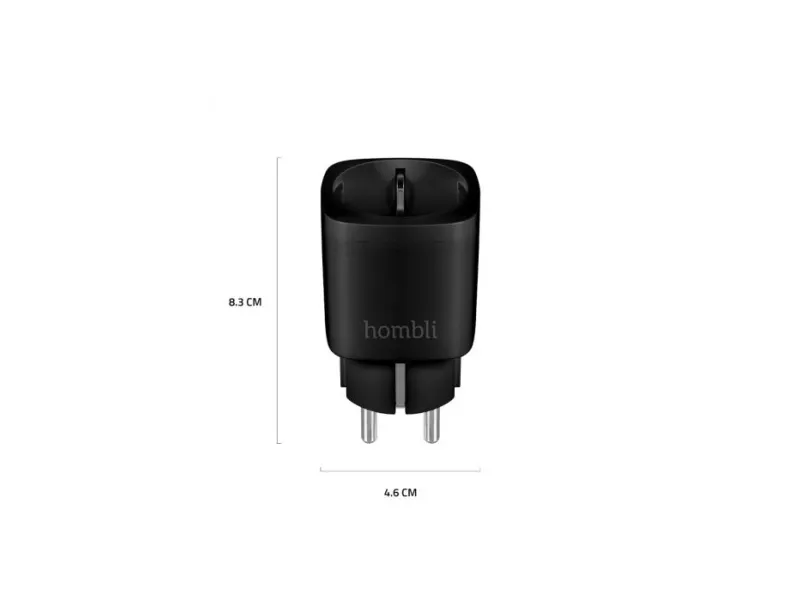 PRODUCT DESCRIPTION No matter where you are, control home electronics using your tablet or smartphone with the Hombli Smart WiFi Plug. You can turn devices on/off, check status, create schedules, and set timers using the Hombli app. With remote access, you are able to check the real-time status of your home appliance anytime and anywhere. Wherever you are, control your devices before arriving home or after leaving. Use the away-mode to make it look like you are at home, even when you are halfway around the world, you can take control and switch off/on or schedule in regular times to conserve energy and reduce your energy bill. The smart wall socket monitors the energy usage of each connected device and shows you how much electricity an electronic device used. Use Amazon Alexa or Google Assistant to voice control to an electronic device that is connected to your smart socket At Hombli we protect your privacy. All GDPR principles are met, user data is only accessible for the user itself and is never shared with third parties. Custom designed Hombli App with a very user-friendly interface. Available in English, Spanish, French, German, Italian, Danish, and DutchHombli HBPP-0205. Placement supported: Indoor, Product colour: Black, Best uses: Home. Applications supported: Hombli app, Mobile operating systems supported: Android, iOS. Connectivity technology: Wireless, Wireless technology: Wi-Fi. Maximum input power: 3680 W, AC input voltage: 220 - 250 V, Maximum current: 16 A. Width: 46 mm, Height: 83 mm