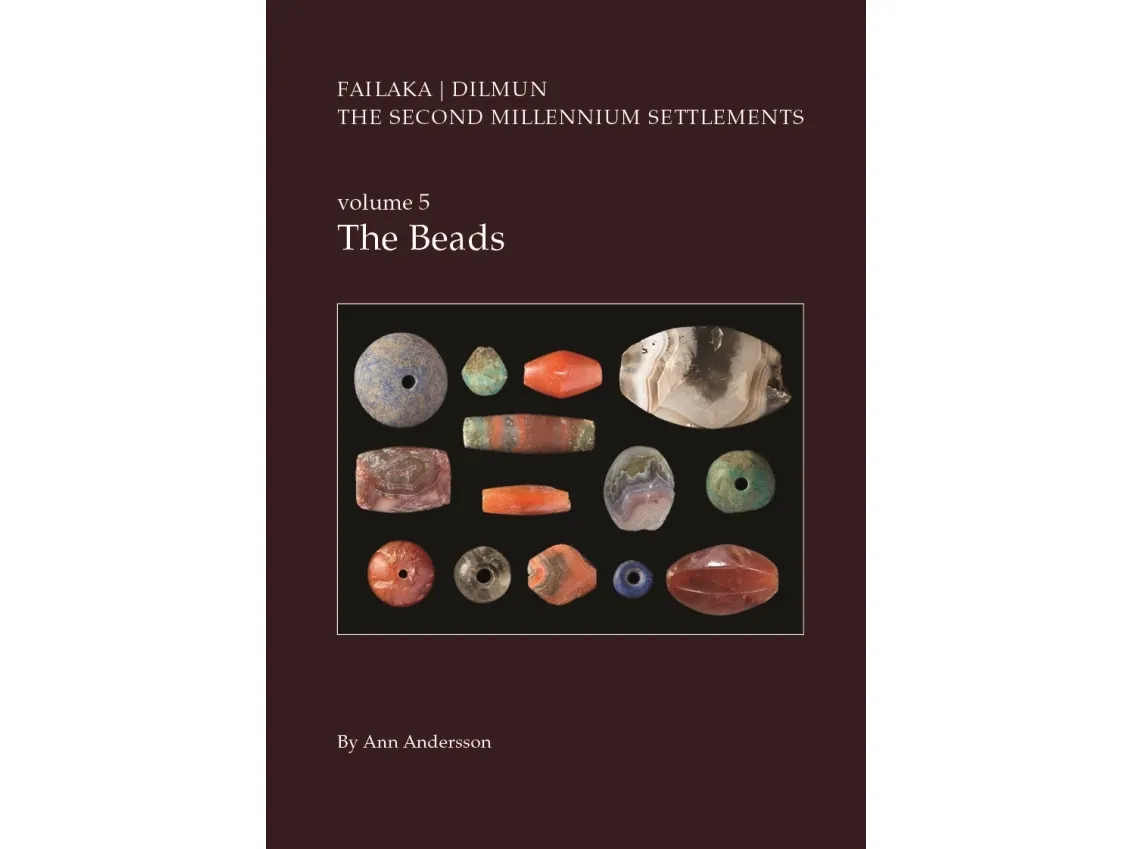 Excavations in 1958-1963 on the island of Failaka in Kuwait uncovered a small community of Dilmun traders from the second millennium BC. Prominent among the finds were 629 beads, most of them made of semi-precious stone, such as different varieties of chalcedony (agate, carnelian, jasper, and moss agate) and quartz (rock crystal, milky quartz, and smoky quartz), and a range of other stone types, such as calcite, chlorite, lapis lazuli, turquoise and porphyry. Additionally, part of the beads was made of glass: a new prestige material of the second millennium. The study consists of a typology, a classification of materials and an analysis of the dating and distribution of the beads. Manufacturing techniques, including perforation and use-wear, are also considered. In a final discussion, the bead corpus from Failaka is compared with similar material from contemporary sites on Failaka and in Bahrain, along with some thoughts on connections and trade relations, which may be inferred from the materials and forms in the bead assemblage. The study proposes far-reaching connections with the Indus in the east and the Aegean in the west.