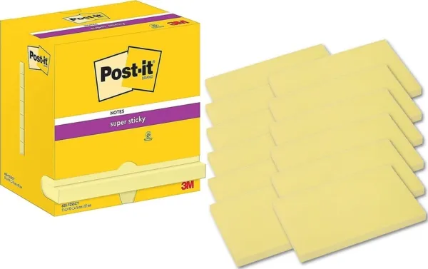 Post-it® Super Sticky Notes Canary Yellow™, 12 kpl, 76 mm x 127 mm