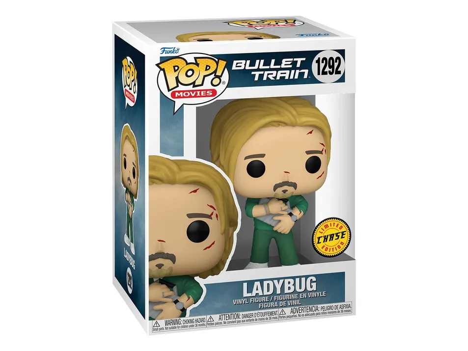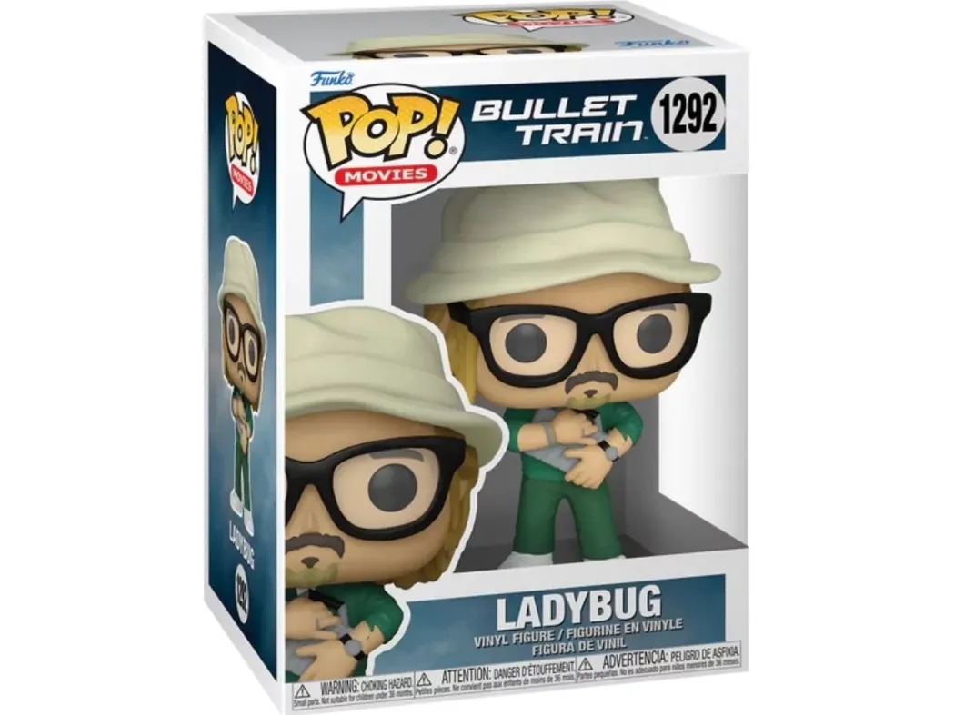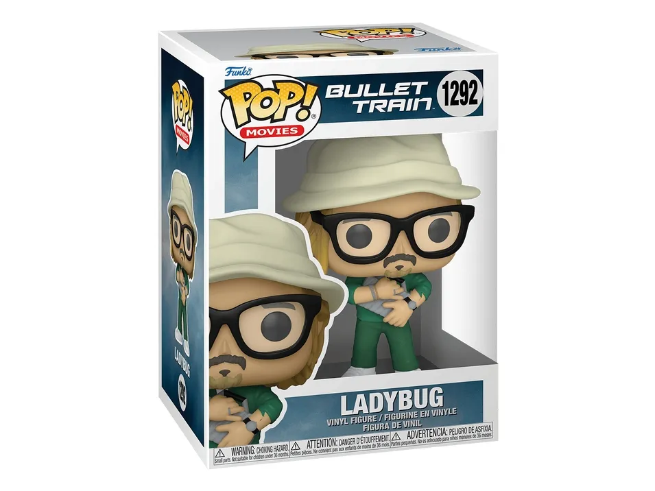 Climb aboard for thrilling adventures with Pop! Ladybug from Sony Pictures’ Bullet Train. Former assassin, Ladybug, is determined to change his ways, but he’s pulled back onto the tracks of a new mission aboard a bullet train headed to Kyoto—and dangerous opponents lurk around every corner. Bring home the excitement of the movie with Pop! Ladybug, who clutches his briefcase, wearing glasses and a hat. There’s a 1 in 6 chance you may find the chase of him, without his hat, and wearing scars from a fight. Expand your Pop! Movies set before the train leaves the station. Vinyl figure is approximately 4.15-inches tall.
