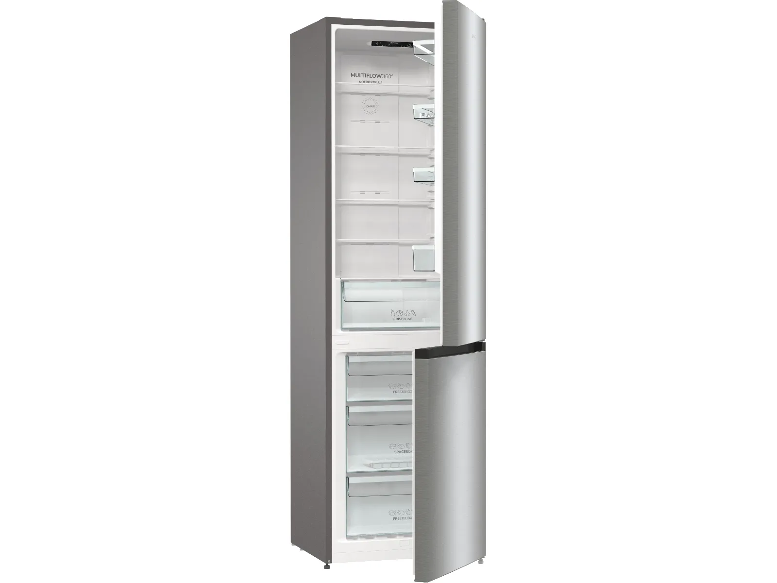 Discover the Gorenje Essential NRK6202EXL4, a refrigerator/freezer designed for modern living. This appliance not only offers an efficient performance with its Class E rating but also features NoFrost Plus technology, ensuring your food remains fresh without the hassle of manual defrosting. With a total net capacity of 331 liters, it provides ample storage space, including three freezer drawers and adjustable glass shelves, to accommodate all your refrigeration needs. The top LED lighting illuminates the interior beautifully, making it easy to find what you need, while the reversible doors offer flexible installation options. Additionally, the electronic controls with a touch interface, door open alarm, and temperature alerts provide peace of mind, ensuring your food is stored under optimal conditions. Make the Gorenje Essential NRK6202EXL4 the heart of your kitchen and enjoy the blend of functionality and style it brings to your home.