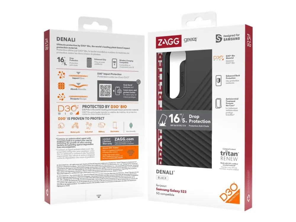 Denali-kotelo antaa vahvan suojan pudotukselta - viidestä metristä asti - ja sen ominaisuuksiin kuuluvat liukumaton otepinta ja teksturoitu viimeistely. Kotelon takaosa on kauttaaltaan vahvistettu D3O-materiaalilla, joten erinomainen suojaus on taattu. Mutta ei siinä kaikki: Denali on myös 5G-yhteensopiva ja se on käsitelty antimikrobiaineella, joka suojaa kotelon pinnoitetta. D3O - armeijan ja ammattiurheilijoiden käyttämä tekniikka - on vaikuttavan puhelimen suojauksen pääkomponentti. D3O on taipuisa ja joustava materiaali, joka kovettuu iskusta, vaimentaa iskua ja suojaa näin laitettasi. PC-taustalevy on valmistettu osittain kierrätysmuovista, joka sisältää kulutusjätettä tai tuotantojätteestä kierrätettyä materiaalia. Se on käsitelty antimikrobisella RepelFlex-pinnoitteella, jonka sisäänrakennetut ominaisuudet suojaavat kotelon pinnoitetta estämällä hajua tuottavien bakteerien kasvun ja mikro-organismeista aiheutuvaa heikkenemistä. Denali on 5G-yhteensopiva, joten saat selkeän ja vahvan signaalin. Kiihkeätahtisessa nykymaailmassa 5G-yhteensopiva kotelo auttaa sinua pysymään ajan tasalla. Denali on yhteensopiva myös muiden langattomien latauslaitteiden kanssa.