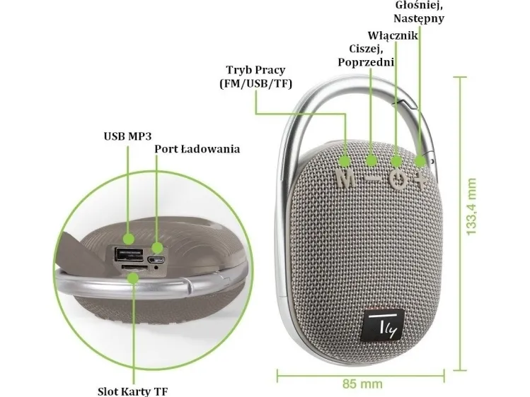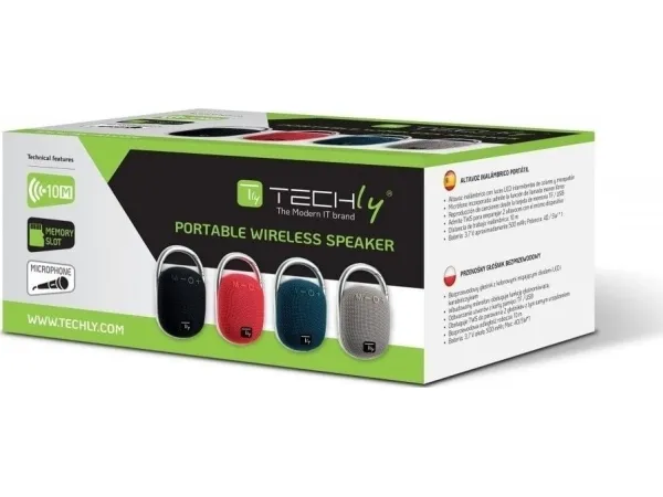 Techly ICASBL321GR. Driver diameter: 4.5 cm. RMS rated power: 5 W, Frequency range: 120 - 20000 Hz, Impedance: 4 Ω. Connectivity technology: Wired & Wireless, Bluetooth profiles: A2DP, HFP, AVCTP, HSP, L2CAP, Bluetooth range: 10 m. Product type: Mono portable speaker, Product colour: Grey, Product design: Spheric. Recommended usage: Universal, Compatible memory cards: MicroSD (TransFlash)