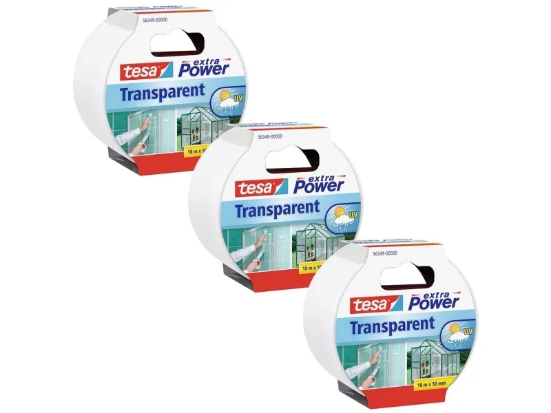 TESA 56349, Läpinäkyvä, Kiinnittävä, Korjaus, Vahvistava, Metalli, PVC-muovi, Polykarbonaatti, Polypropeeni, Puu, Karkea, Tasainen, UV-kestävä, Vedenkestävä, 10 m