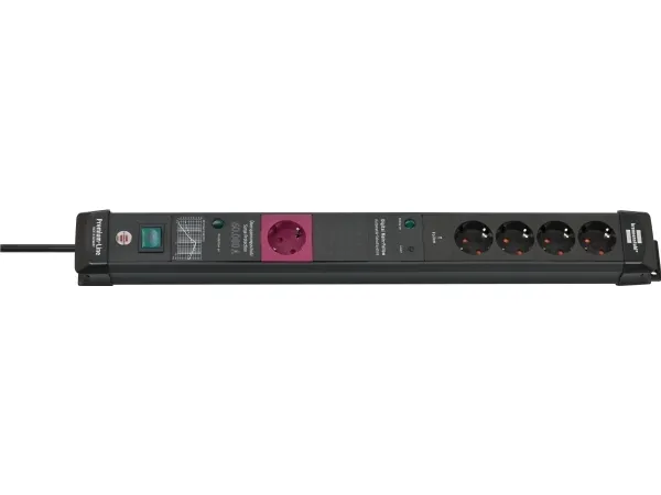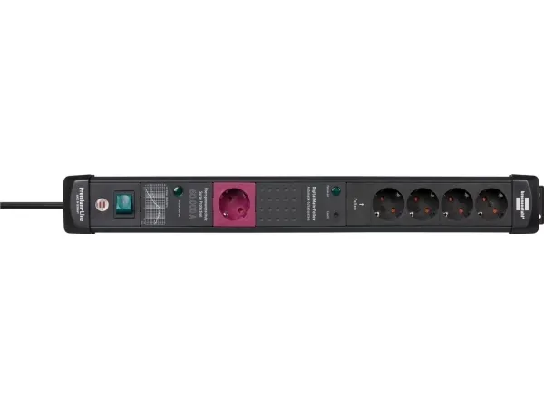The Premium-Line 5-way extension lead with 3m cable impresses with its quality and safety in all areas. The device has a practical automatic switching system. The Main device (e.g. a computer) can include the Follow devices (e.g. monitor, sound system, printer, scanner, etc.) in the automatic control. With the on/off switch of the device (plugged into the red Main socket), all devices (in the Follow sockets) can be switched on and off automatically. The surge protection socket strip protects valuable equipment from surges during thunderstorms, lightning strikes, etc. with a max. leakage current of up to 60000A. It not only has an increased bursting strength, but also has a higher protection rating. It not only has increased protection against accidental contact, but also has the following impressive features: - High-quality protection against HF interference thanks to integrated filter - 1 Main and 4 Follow sockets (alternatively adjustable: 5-Permanent sockets) - Digital: Stores the correct setting for your Main unit at the touch of a button - Advanced: Switches your Follow units safely and gently using the latest technology - Flexible: Can be switched to permanent mode if required - Safety switch illuminated, two-pole on/off switchable - Suitable for mounting - Rated current 16A - EMI/RFI interference suppression filter - Additional equipment Main-Follow (Digital)Brennenstuhl 1951150500. Cable length: 3 m, Placement supported: Indoor, Power plug form factor: Angled. AC outlets quantity: 5 AC outlet(s). AC input voltage: 230 V, Maximum current: 60000 A. Width: 110 mm, Depth: 65 mm, Height: 620 mm. Number of products included: 1 pc(s)