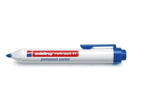 Edding retract 11, Sininen, Pyöreä pää, Muovi, 1,5 mm, 3 mm, Pahvi, Lasi, Nahka, Metalli, Paperi, Muovi, Puu