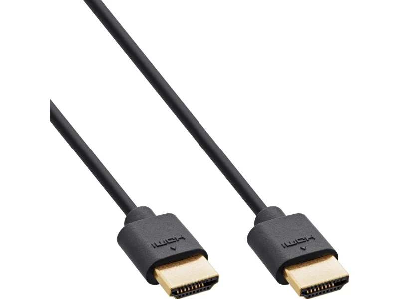 Gold-plated contacts The gold-plated plugs improve the conductivity, durability and corrosion resistance of the InLine HDMI cable. The risk of oxidation or corrosion is significantly reduced. This increases the long-term reliability of the connection, e.g. even in environments with higher humidity. Gold-plated contacts adapt better to the connections and are less susceptible to abrasion and damage when plugging and unplugging. In addition, the higher conductivity can improve signal transmission and therefore picture and sound quality, especially over longer cable runs.InLine Slim Ultra High Speed HDMI Cable M/M 8K4K gold plated black 0.3m. Cable length: 0.3 m, Connector 1: HDMI Type A (Standard), Connector 1 gender: Male, Connector 2: HDMI Type A (Standard), Connector 2 gender: Male, Connector contacts plating: Gold, HDMI version: 2.1, 3D, Data transfer rate: 48 Gbit/s, Audio Return Channel (ARC), Product colour: Black
