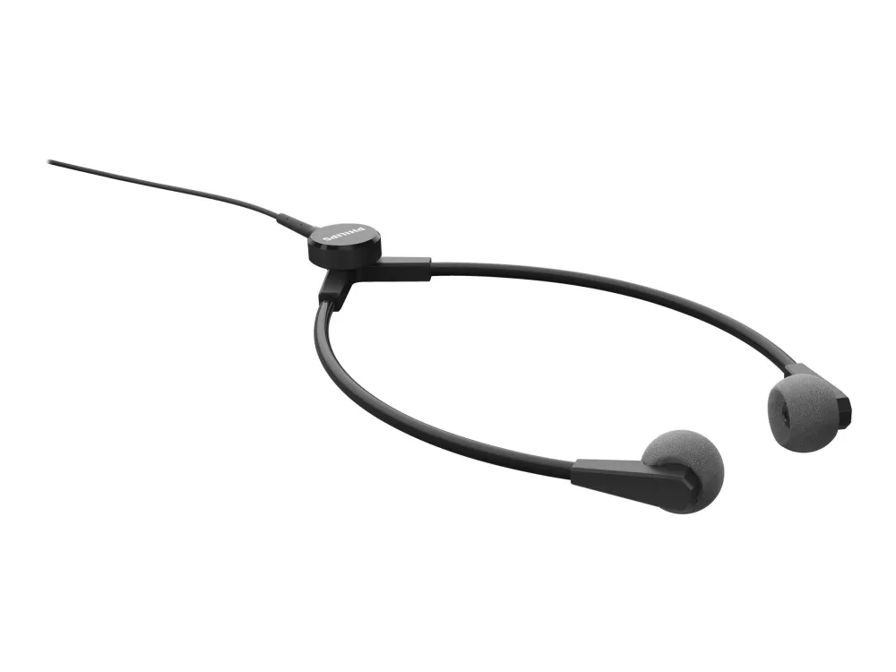 The lightweight Y-style headphones are designed to deliver excellent sound quality, with soft ear cushions for wearing comfort, and a hanging bracket that attaches the headset to a monitor.