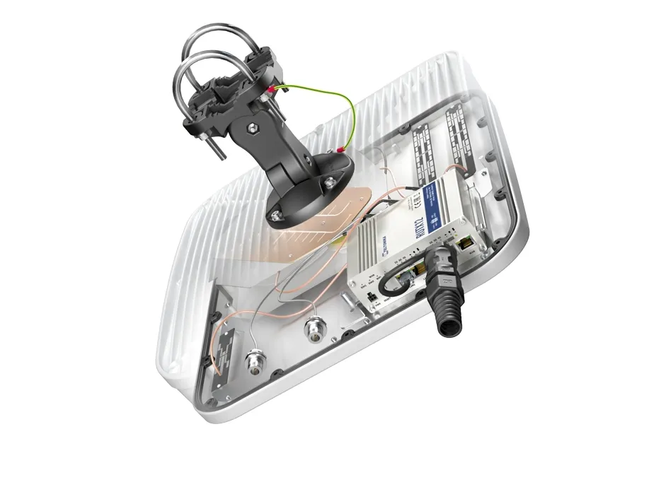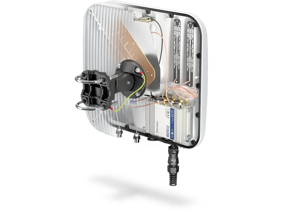 The QuMax XR2 is a bi-directional LTE eXtra Range antenna set (two separate antenna) two connect to two different LTE base station (it can also be connected to one base station in order to obtain a greater share of the transfer from that base station). The main antenna additionally has built-in Wi-Fi dual band, GPS and Bluetooth antennas, 2x Nf connectors for the second LTE antenna and a space to install the RUTX12 router inside antenna enclosure. The second antenna is LTE Extra Range directional antenna only and is in smaller enclosure. The QuMax XR2 set is dedicated to long-range connections from the LTE base station, also to two different base stations, which gives optimal use of functions such as load balancing and carrier aggregation.QuWireless AXR12. Antenna gain level (max): 7 dBi, Frequency band: 0.6 - 2.7 GHz, Gain: 7 dBi. Antenna type: Directional antenna, Polarization: Dual polarization, Voltage Standing Wave Ratio (VSWR): 1.7 - 2. Width: 272 mm, Depth: 276 mm, Height: 96 mm. Quantity per pack: 1 pc(s)